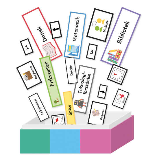 Med piktogramkassen til skolen får du alt, hvad du har brug for til at skabe fleksible og overskuelige dags- og lektionsskemaer.