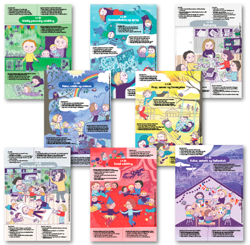 Med disse otte plakater får du konkret inspiration og input til, hvordan du kan arbejde med den nye styrkede pædagogiske læreplan i praksis. Plakaterne er bygget op med konkrete praksiseksempler, som du kan blive inspireret af, når du selv skal sætte mål, organisere og planlægge den pædagogiske praksis. Og så er de herligt illustreret og lige til at hænge op på stuen som flot dekoration.